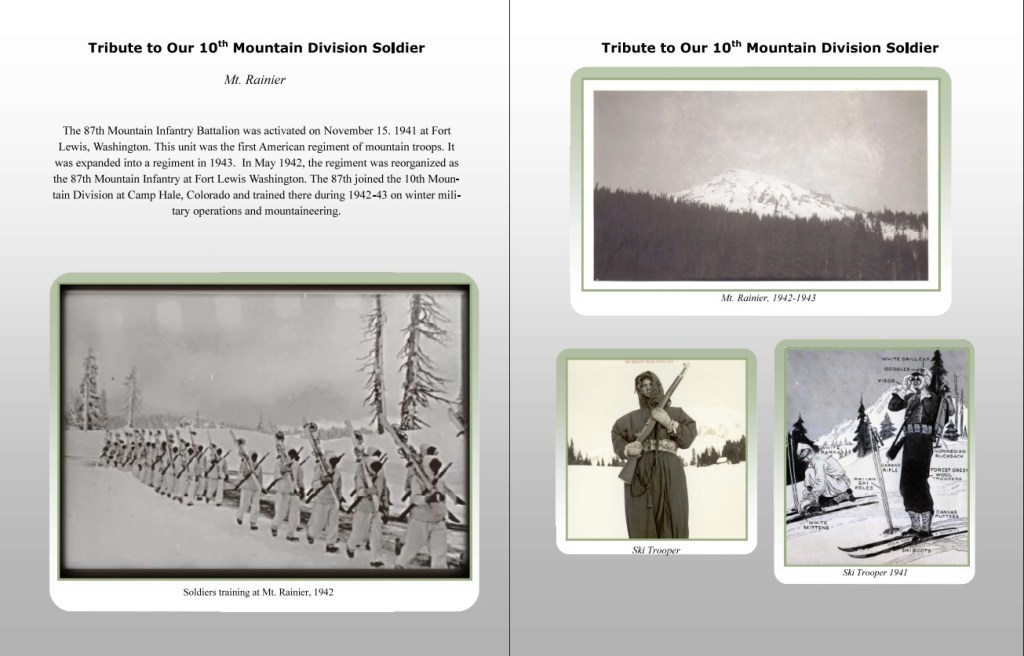 Veterans and descendants were asked to submit pictures and a brief biography of 10th Mountain Division soldiers. It is though the generous support of veterans and descendants that we can now offer this revised 2013 Tribute Book.